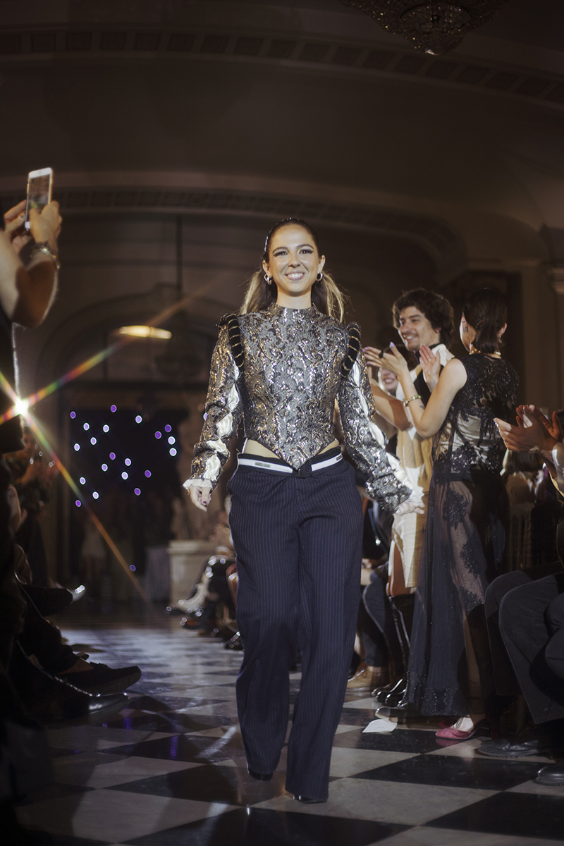 One of the brand’s most significant milestones was Ópera Prima Runway, a show held in December 2022 at the Teatro Municipal de Santiago, a historic monument in Chile. Francisca oversaw the design, creative direction, and production of 22 looks made entirely from recycled materials, reaffirming her commitment to a conscious, experimental approach to fashion.