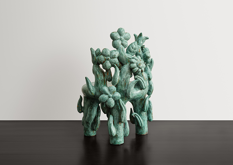 “I want to be a wavy line,” Chris Wolston says. “I want my work to be a wavy line, because it can’t be. Not really. I make things out of bronze and ceramic and every other stubborn material that requires a brute physicality to render and shape. My practice involves granting my materials a kind of aspiration. I want them to desire a different state of being. To stretch their boundaries as though they were in drag. Casting flowers in bronze and painting with patina.”