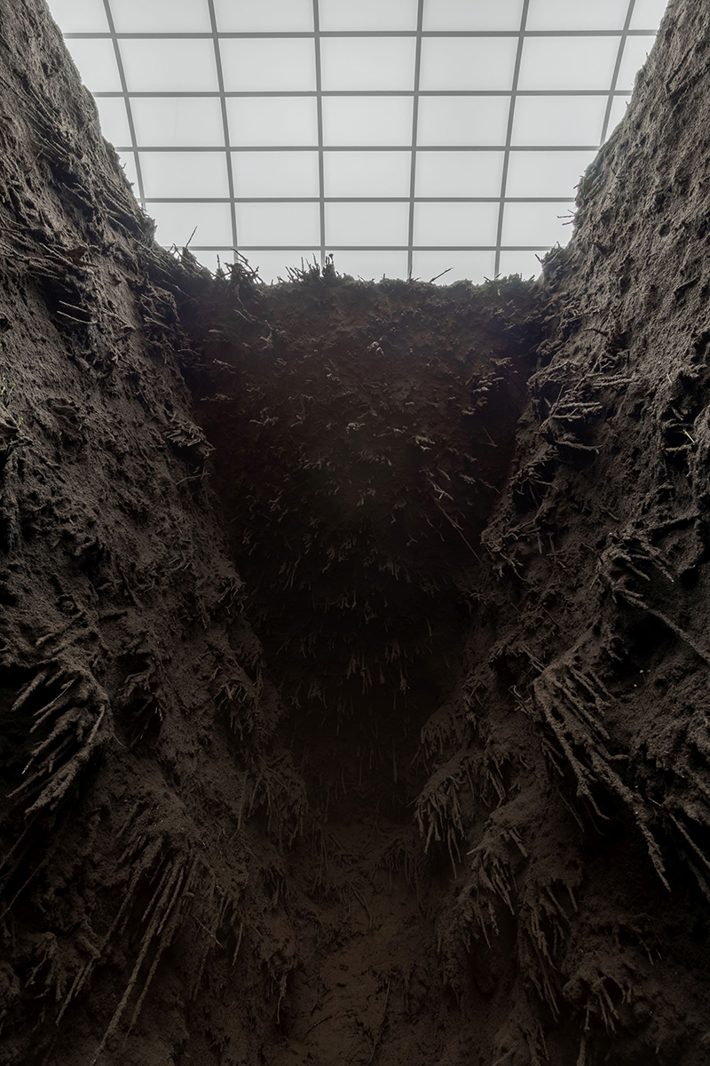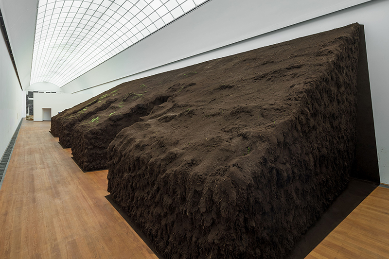 Delcy Morelos, Profundis, 2025, Erde, Ton, Wasser, Holz, Metall, Jute, Heu, Stroh, Zimt, Nelken, Buchweizen, Chia-Samen, Tabak, Honig, Maße variabel. Ausstellungsansicht Hamburger Bahnhof – Nationalgalerie der Gegenwart, 11.7.2025 – 25.1.2026 © Delcy Morelos, 2025. Courtesy die Künstlerin und Marian Goodman Gallery. Foto: Staatliche Museen zu Berlin, Nationalgalerie / Jacopo La Forgia