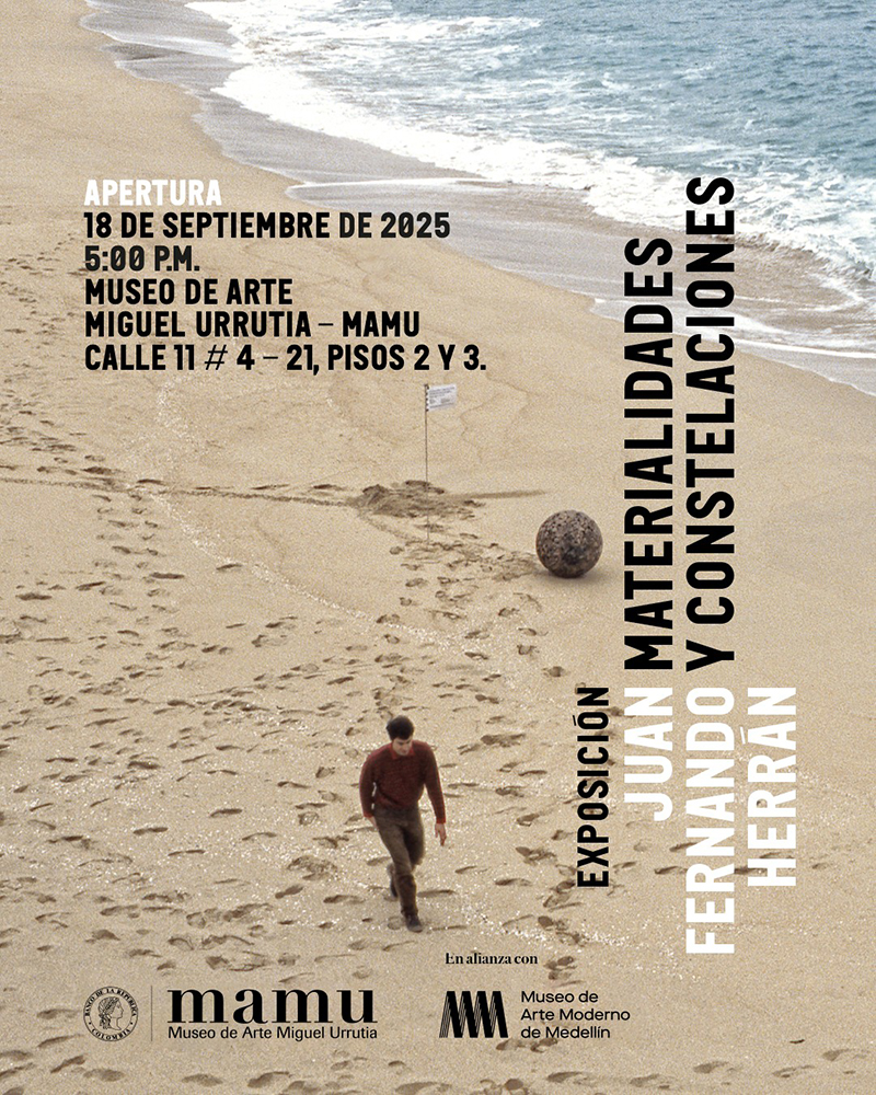 El Museo de Arte Miguel Urrutia – MAMU presenta Materialidades y Constelaciones de Juan Fernando Herrán. Una retrospectiva con más de 80 piezas —dibujos, instalaciones, videos y esculturas— que, bajo la curaduría de María Margarita Malagón, invita a adentrarse en la manera en que el artista conecta memoria, historia y política. Juan Fernando Herrán lleva más de 30 años explorando el mundo a través del arte: sus obras nacen de investigaciones sociales, históricas, arquitectónicas y existenciales, combinando fotos, bocetos y trabajo de campo.