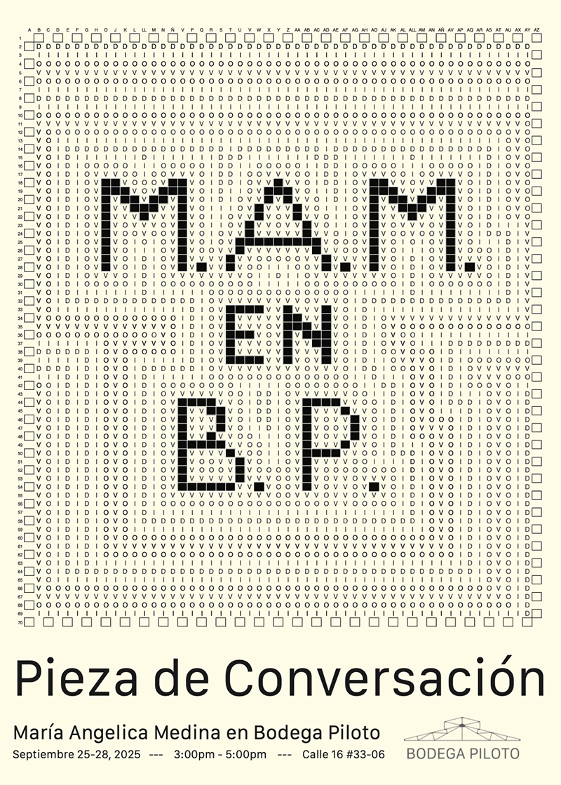At Bodega Piloto, María Angélica Medina presents Piece of Conversation, a project that since 1976 has revolved around talking, listening, and sharing. The artist uses weaving as her language: each thread, repetition, and gesture builds a work that grows over time. Beyond its size or color, the most important thing is weaving in community: next to the artist is an empty chair inviting anyone to sit down and join the dialogue.