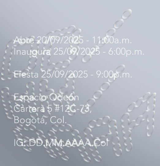 As part of this month dedicated to art, the exhibition DDMMAAAA will be presented, bringing together artists such as Adriana Martínez Barón, Gabriel Mejía Abad, Henry Palacio, Juan Sebastián Peláez, Maggie Petroni, Miguel Escobar, Rafael Díaz, Sofía Reyes and Videodrome. The show will also feature a special participation by Bárbara Wagner & Benjamin de Burca, invited artists of the biennial.