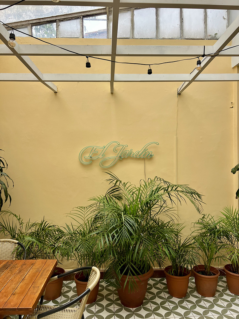 El Jardín es el rincón secreto de la casa Ba hué en Quinta Camacho, donde moda y cultura se unen. Más que un café-bar, cada mes presenta talleres, clases de salsa, música en vivo y otras experiencias que lo convierten en un lugar de encuentro creativo en la ciudad.