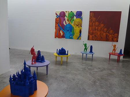 Se trata de una muestra retrospectiva que reúne pinturas, esculturas e instalaciones realizadas por Nadín Ospina durante 33 años de producción. El color es la premisa clave de su obra, en ella se puede apreciar imágenes de series televisivas como Pokemón, guerrilleros y amapolas que son figurines de Lego, pinturas de los indios americanos y escultura de personajes de Disney, entre muchas otras temáticas.