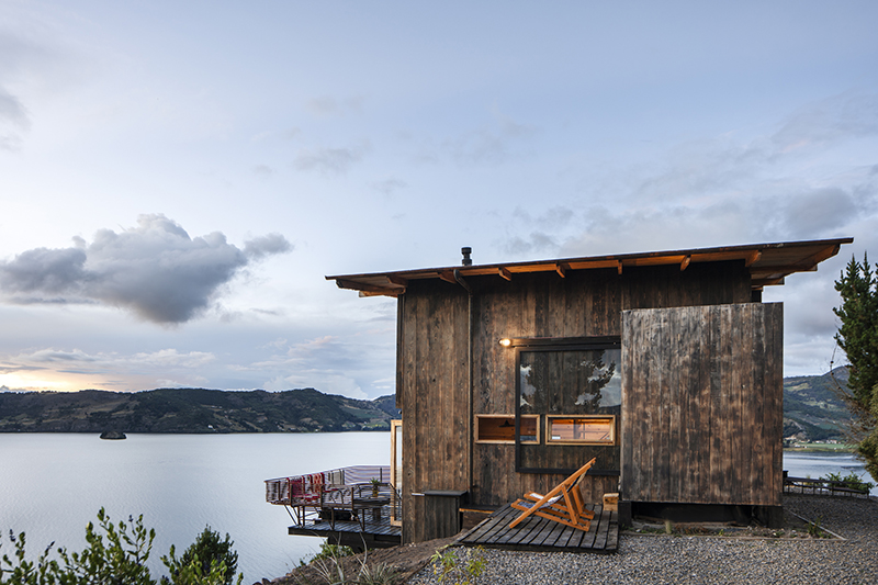 Punta Casitas, designed by Yemail Arquitectura in 2022, is located on the rocky slopes surrounding Lake Tota in Boyacá, at an altitude of 3,015 meters. Conceived to blend into the páramo landscape, this compact 51 m² home uses a vertical layout inspired by naval architecture, with three levels that maximize space and frame the views, organized into three main zones.