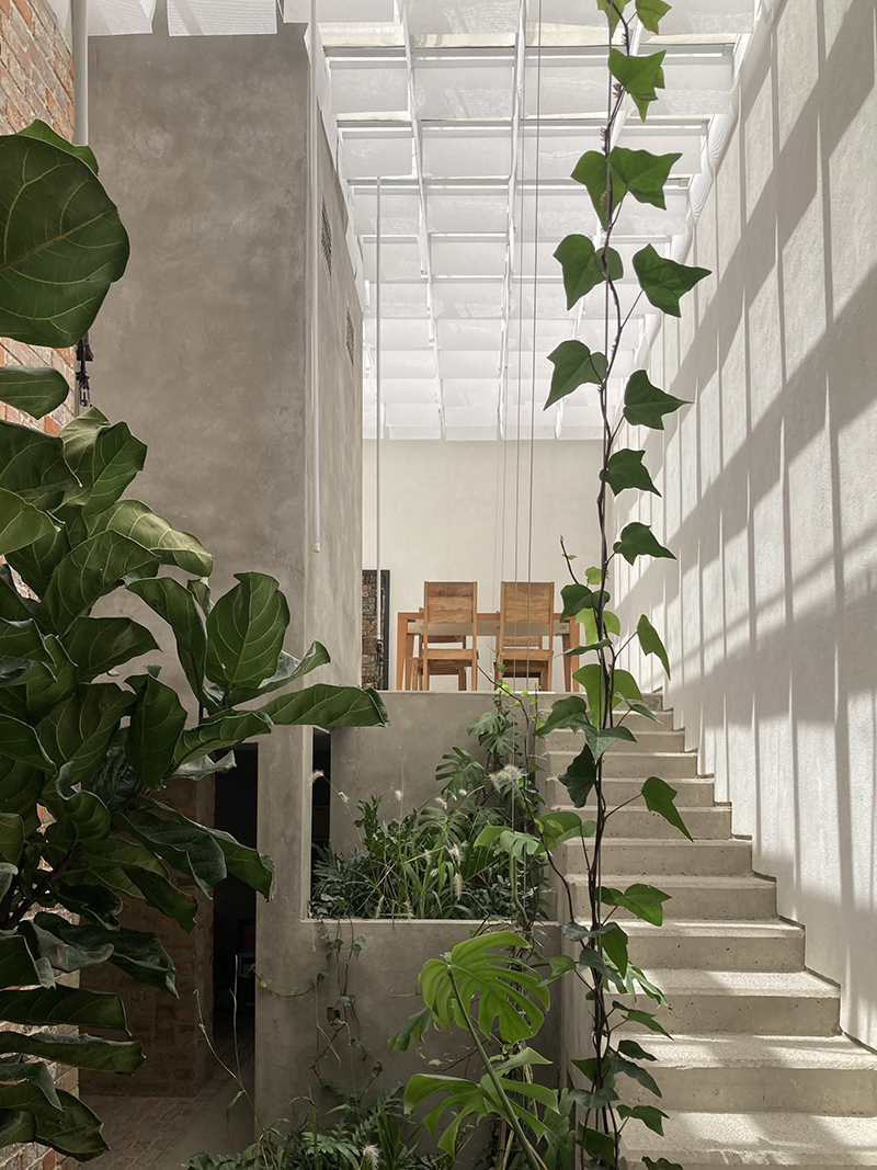 El más reciente de estos proyectos, Casa Taller III, concentra muchos de los aprendizajes acumulados. Su estructura de mampostería se conserva y resalta, afirmando una voluntad de permanencia y memoria. Acá la luz también se convierte en protagonista, generando un ambiento cálido y una atmósfera tranquila.