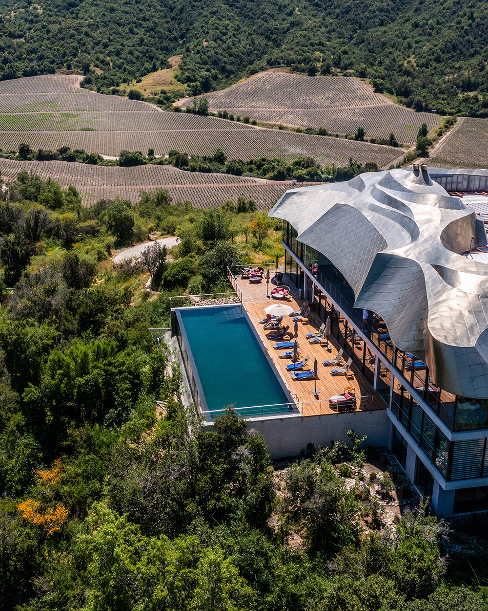 Located two hours from Santiago’s airport, in San Vicente de Tagua Tagua, VIK Hotel has been recognized as the World’s Best Wine Hotel by the World Travel Awards and frequently appears in major industry rankings. With 4,500 hectares of private land, the project brings together wine, architecture, and landscape in a way that feels naturally connected. More info.