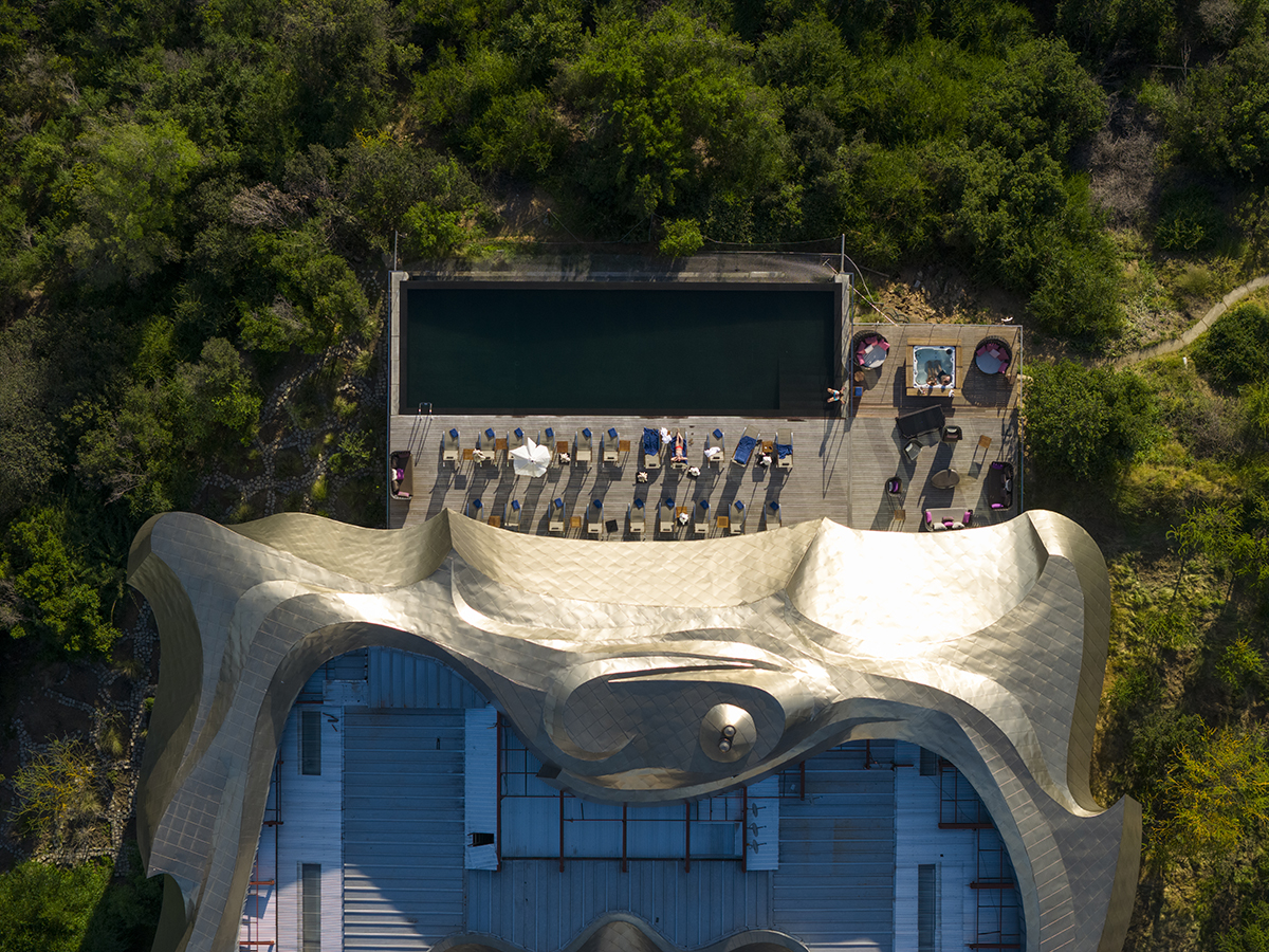 En Millahue, VIK funciona como un conjunto donde bodega y hotel comparten una misma visión: el paisaje es el centro y la arquitectura se adapta a él. Concebido como un proyecto integral que reúne vino, arte y diseño, el lujo se entiende desde la experiencia sensorial, la conexión con el territorio y el cuidado del detalle. La arquitectura del hotel es uno de sus puntos más llamativos. Diseñado por el arquitecto uruguayo Marcelo Daglio, el edificio destaca por su techo de titanio dorado y una estructura inspirada en las montañas y en el movimiento del viento del valle.